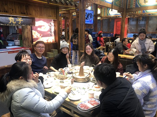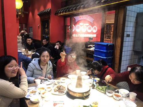 要問(wèn)冬天和什么最配,那答案肯定是火鍋了。這不,分析中心的小伙伴們?cè)?9號(hào)的工會(huì)活動(dòng)日便結(jié)伴來(lái)到了老清泉火鍋店,寒冷的冬日里吃一頓熱氣騰騰的火鍋,把菜放進(jìn)咕嚕咕嚕的鍋里再裹上調(diào)好的醬汁,一口吃下去,暖心又暖胃。吃完火鍋再看場(chǎng)電影,生活好不愜意。