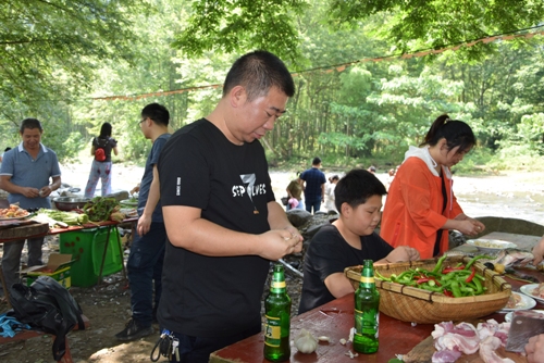 大光洞溪畔農(nóng)莊坐落在連云山脈之下,群山環(huán)繞,車輛一進(jìn)入山莊,大家就感受到了絲絲涼意。到達(dá)現(xiàn)場,大家馬不停蹄,第一個活動便是廚藝比拼,全員分為六組進(jìn)行角逐,評選最優(yōu)團(tuán)隊(duì)。大家都卯足了干勁,洗菜切菜,燒火烹飪,經(jīng)過大家的默契配合,一道道美味被端上餐桌,各團(tuán)隊(duì)之間也互相分享各自的菜肴,一起品嘗美食。最終經(jīng)過激烈的比拼,食品工段-曾強(qiáng)及所在團(tuán)隊(duì)榮獲廚藝最精湛廚師及最優(yōu)團(tuán)隊(duì)殊榮。