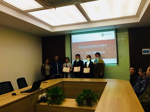 培訓(xùn)課程結(jié)束之后,在黃莉老師的安排下,來自基地的三位同事蔣鳳開、江蕓輝和張曉琳先進(jìn)行了相關(guān)理論考試和實操考核??己藲v時4個小時,即使經(jīng)過高強度的集中培訓(xùn),三位同事沒有絲毫懈怠,一直全神貫注于答題和實驗。最終,三位同事都順利通過了本次內(nèi)訓(xùn)師考核認(rèn)證,獲得了實驗室人員技能“實驗室基本理論及操作”項目內(nèi)訓(xùn)師資格證和內(nèi)訓(xùn)師聘書。10月15、16日,總部研發(fā)體系覃琳、葉鵬、李小路三位同事也相繼通過了本次內(nèi)訓(xùn)師的筆試和實操考核并獲得了實驗室人員技能“實驗室基本理論及操作”項目內(nèi)訓(xùn)師資格證和內(nèi)訓(xùn)師聘書。